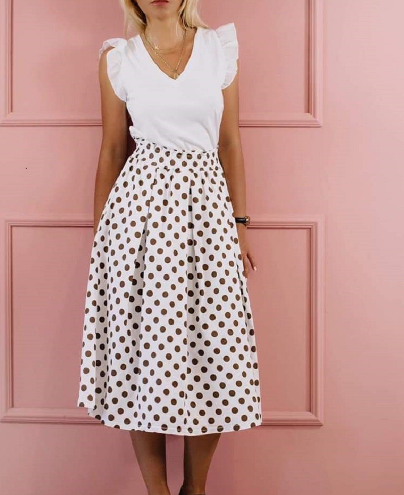 T-shirt świetnie sprawdzi się do letniego outfitu- spódnica lub szorty.