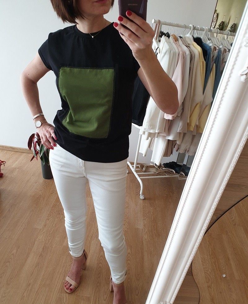 T-shirt wykonany z najwyższej jakości bawełny. Modny, unikatowy motyw na bluzce podkręca stylizację.